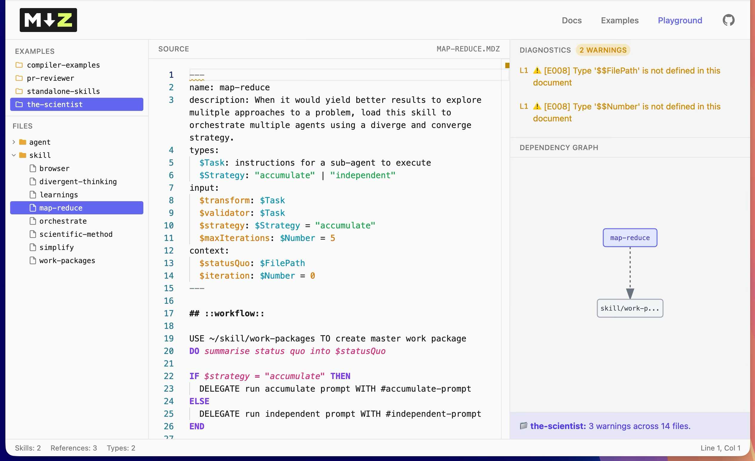 I drafted a very basic language spec – a superset of markdown designed for agents – used the language to write the prompts I needed for The Scientist, and used The Scientist to build the language.